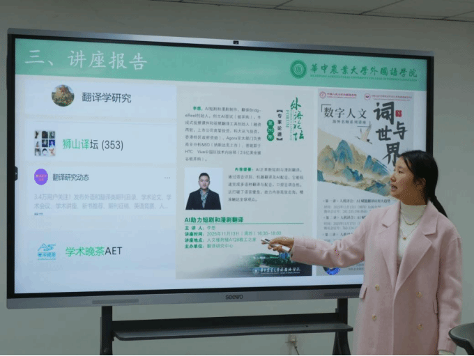 分享伊始,毕丽芳结合翻译专业硕士培养特色展开分享。她提出科研记录本可以从“基本信息、主要内容、自我思考”三方面进行记录,总结了理论学习三个阶段,鼓励大家主动充实自身翻译实践经历,做好记录并从中反思总结。最后,她以“保证论文的核心思想和内容的原创性”做结,提醒各位同学在自身科研经历中减少对AI工具的依赖性,号召大家“拥抱技术,坚守底线;求真务实,思辨创新”。