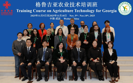 2025年11月18日,由商务部主办、湖北生物科技职业学院承办的“格鲁吉亚农业技术培训班”在武汉圆满结业。结业仪式上,商务部国际商务官员研修学院副院长徐凯致辞,并与湖北生物科技职业学院校长李峰等共同为学员颁发证书。本次培训为期14天,15名学员均来自格鲁吉亚农业领域的核心骨干,包括政府官员、科研人员与企业高管等。我院翻译硕士毕丽芳、金诚民以翻译与项目实习生的身份全程参与,为培训顺利开展提供了有力保障。