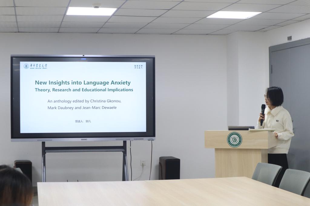 2024年11月6日晚7点至8点半,英国365集团第十二期学术晚茶·碎读书会在教工之家成功举办。本次读书会领读人是2024级学硕研究生郭凡,分享书目是New Insights into Language Anxiety—Theory, Research and Educational Implications。我院龚献静、耿云冬和潘不寒三位研究生导师应邀参与读书会活动。2024级专硕研究生毕丽芳主持会议。