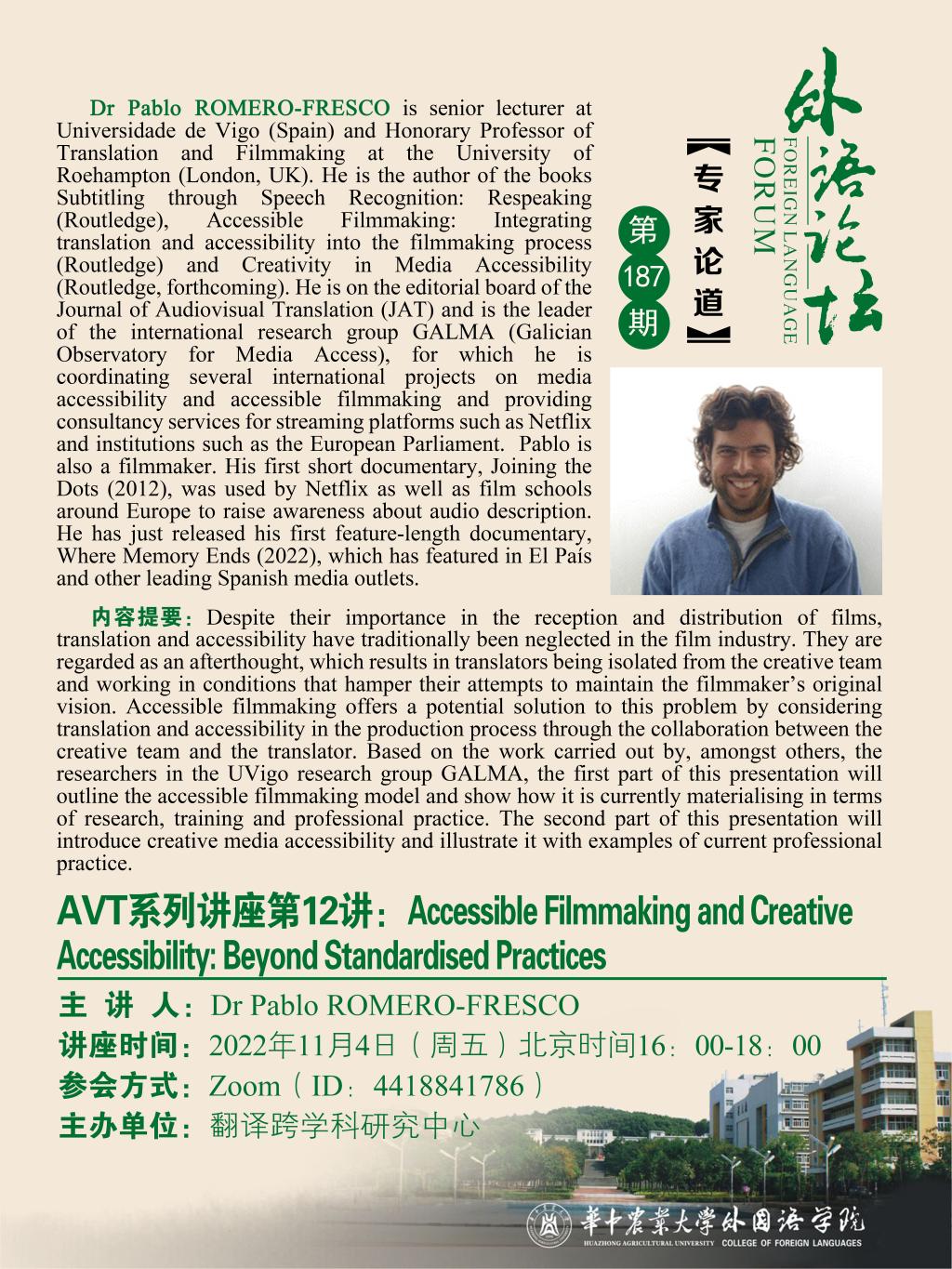 (第187期)Accessible Filmmaking and Creative Accessibility:Beyond Standardised Practices
