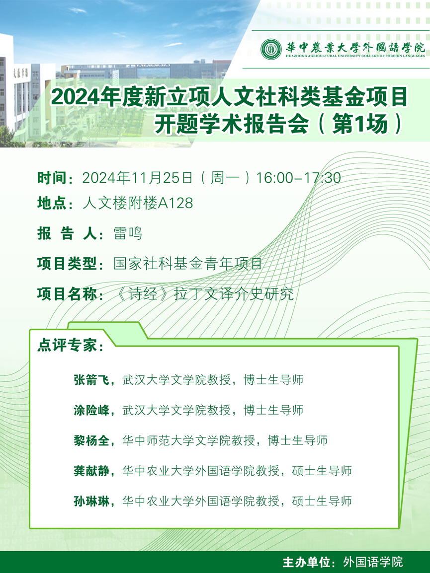 2024年度新立项人文社科类基金项目开题学术报告会(第1场)