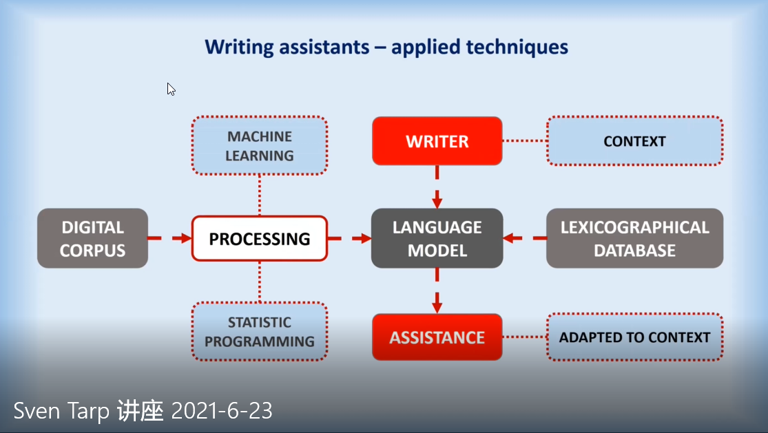 在讲座第三部分,以Write Assistant研发为例,Tarp教授展示了新型数字词典研发的框架与理念(如下图所示):
