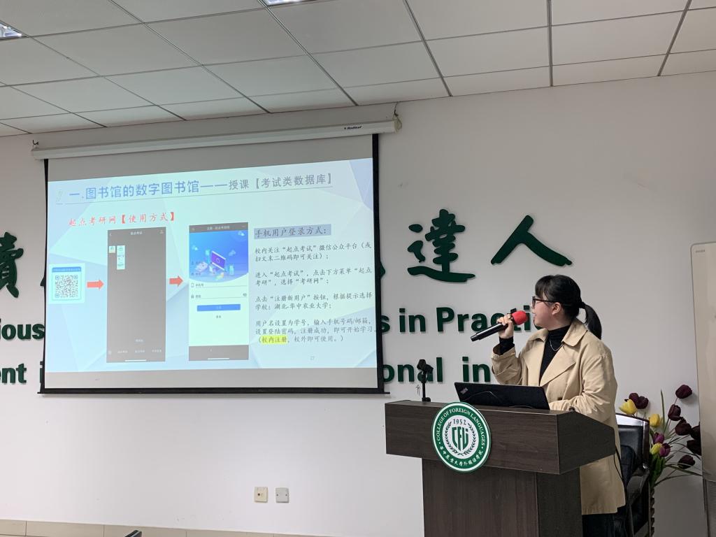 本次培训分为图书馆数字资源、图书馆信息服务、校外访问24小时网上图书馆,以及学院学术论文产出情况四个部分。在图书馆数字资源使用方面,胡子祎按教学、科研两类需求,逐一讲解了相关数据库的功能及使用方法,包括考试英语类数据库、英语学习类数据库、语料类数据库、外文专业数据库。除了提供丰富的数字资源,图书馆还以“读者第一,服务至上”为宗旨,致力于不断提升信息服务水平,开展了科研项目查新、论文查证查引、学科分析、用户培训与教学、文献传递、参考咨询、学位论文提交等信息服务。胡子祎鼓励老师们挖掘和拓展现有数字馆藏潜力,在教学与科研中充分利用图书馆馆藏资源。胡子祎还就如何在假期校外24小时访问图书馆、如何使用知网研学平台服务个人知识学习与管理进行了详细的介绍。