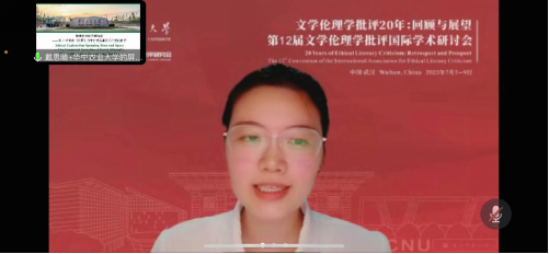我院李敏锐副教授作为分论坛召集人,主持“分论坛20:非人类叙事与文学伦理学批评”并以《“这不是魔幻般的而是噩梦般的现实”:哈桑·布拉希姆短篇小说中的非自然叙事及其伦理启迪》为题进行发言。李敏锐首先谈到 “僵尸”叙述者是布拉希姆常用的叙事策略,通过“僵尸”的叙述、行动以及观察,小说给读者呈现了一个战火连天中的伊拉克,揭示了当下伊拉克人民的生存现状,即如同“僵尸”一般地活着:无情、麻木、残忍以及凶残。随后根据布拉希姆的作品《前往柏林的卡车》、《伊拉克的基督》、《现实与记录》以及《卡洛斯·弗恩特斯的噩梦》等作品,进一步阐述了小说中“不可能的”故事情境和事件以及小说人物的“偏执疯狂心理”。李敏锐认为,哈桑·布拉希姆短篇小说中的非自然叙事凝聚了作者独特的创作理念,展现了其丰富的想象力,同时也暗含了其深刻的伦理启迪。它们揭示了战争、恐怖和暴力给人们生活带来的消极影响,探讨了有尊严、有意义的生命,也表达了在特定历史环境中如何重塑自我空间的可能性。