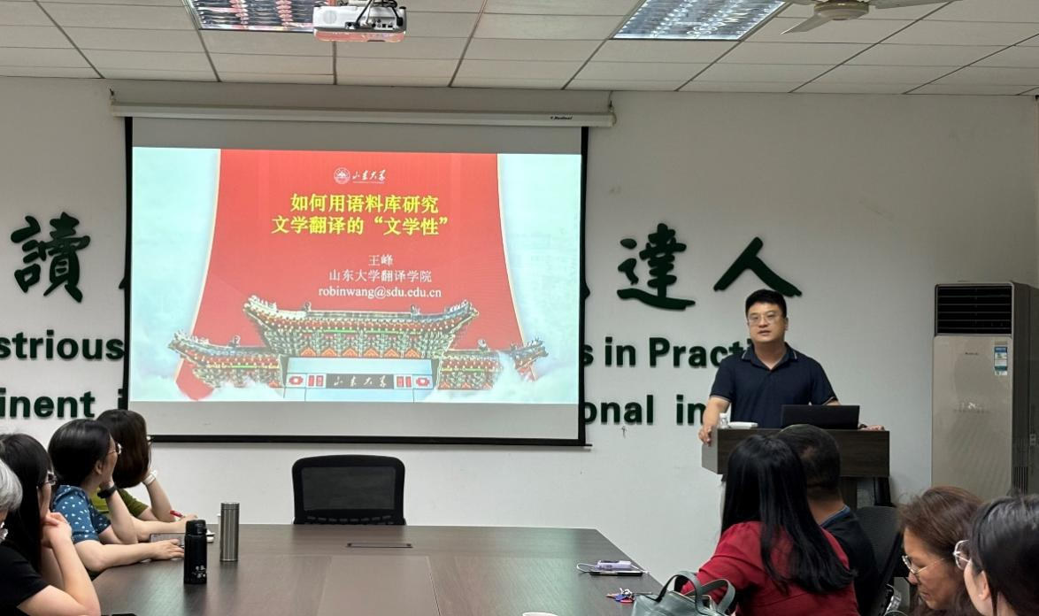 6月25日下午,山东大学翻译学院教授、博士生导师王峰应邀做客第254期“外语论坛·专家论道”,以“如何结合语料库研究文学翻译的‘文学性’”为题,为英国365集团师生带来了一场学术盛宴。本次讲座由我院贺赛波副教授主持。王峰首先以泰戈尔—冰心的比较文学影响研究为案例,分析了冰心从翻译泰戈尔散文诗《吉檀迦利》《园丁集》到创造小诗《繁星》《春水》的诗学借鉴与创新。通过语料库的共同主题词、平均句长的方法对比了两种诗歌体裁的形式特征,结合概念隐喻、社会文化语境展示了冰心的诗学创新。