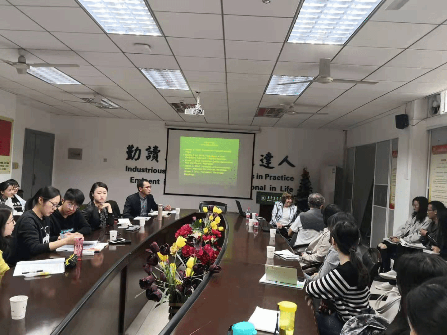 接着,德国著名翻译理论家Juliane House做了一场题为“Towards a new linguistic-cognitive orientation in the translation studies”的学术讲座。覃江华老师首先向大家介绍了House教授在学术上的巨大成就,在座的师生用掌声对远道而来的客人表示热烈的欢迎。学院教师、研究生及慕名前来的兄弟院校的师生聆听了本场讲座。