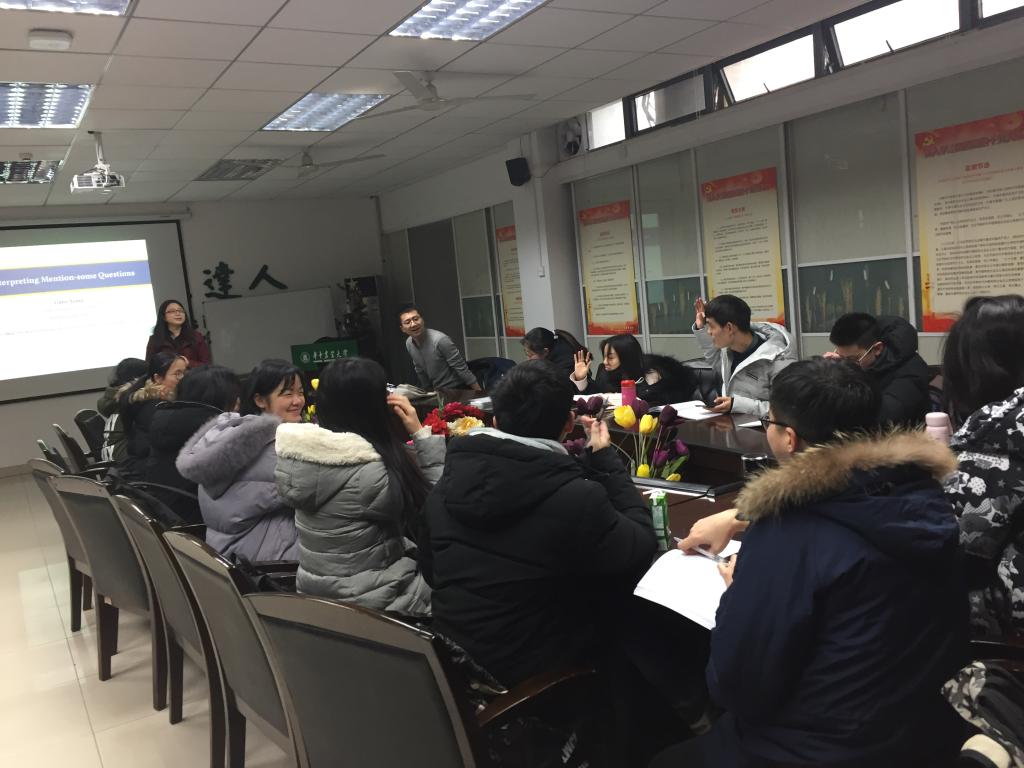 12月27日下午2点,应学院邀请,美国罗格斯大学的助理教授向伊梅做客我院“外语名家谈”学术交流活动,带来了一场题为“Interpreting Mention-some Questions”的讲座。讲座由我院副教授徐贝贝主持,2018级MTI全体学生、MTI教师代表参加了本次讲座。