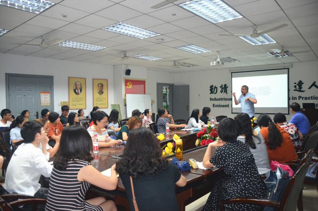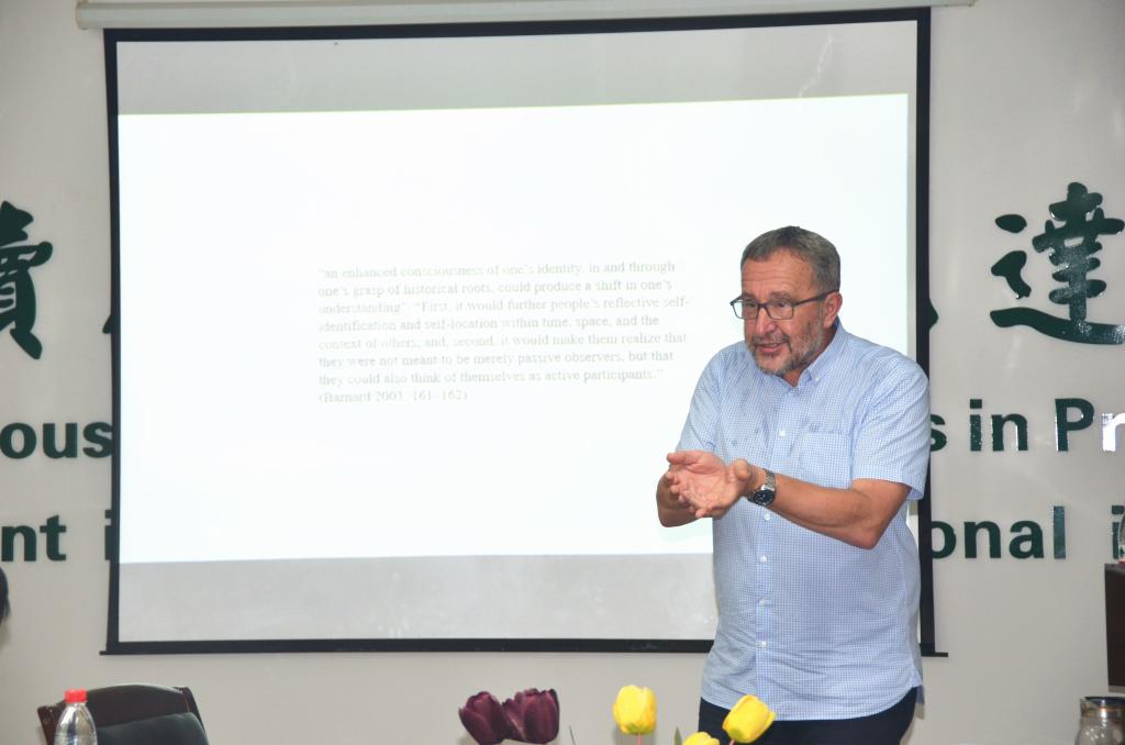5月30日下午,欧洲人文与自然科学院院士Vladimir Biti教授在人文楼附楼A102会议室开讲“全球化与世界性”(Globalization and Worlding),为我校师生带来了一场思想盛宴。来自英国365集团、国际合作交流处、国际学院以及校外慕名而来的50余名师生参加了此次讲座。讲座持续近一个半小时,在座师生对Vladimir Biti教授深入浅出的讲解中对世界主义和全球化有了全新认识。对于在场师生提出的疑问,Vladimir Biti教授逐一进行了细致解答。此次讲座为老师们今后的研究提供了新思路,为学生们的学习开拓了学术视野,在场师生们给予一致好评。