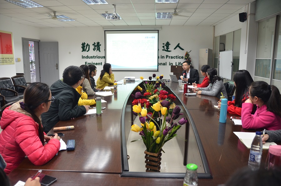 紧接着,王博士就语言服务的特点,即产业化、碎片化、多元化、信息化、流程化和协作化的特点展开,举以权威的数据、生动鲜活的例子、精彩的影音视频,向在场师生展示了机器翻译对翻译方式的改变以及新技术对现代生活的影响。王博士详细说明了当前机器翻译的大趋势,并向在场师生介绍了几个知名的翻译平台,如Flitto、TryCan和Lionbridge等等。他同时呼吁高校翻译教育要与产业需求结合起来,并最后从理论的高度提出,翻译技术研究是具有较高学术价值的跨学科性研究。王博士赞扬并回答了同学们提出的问题。