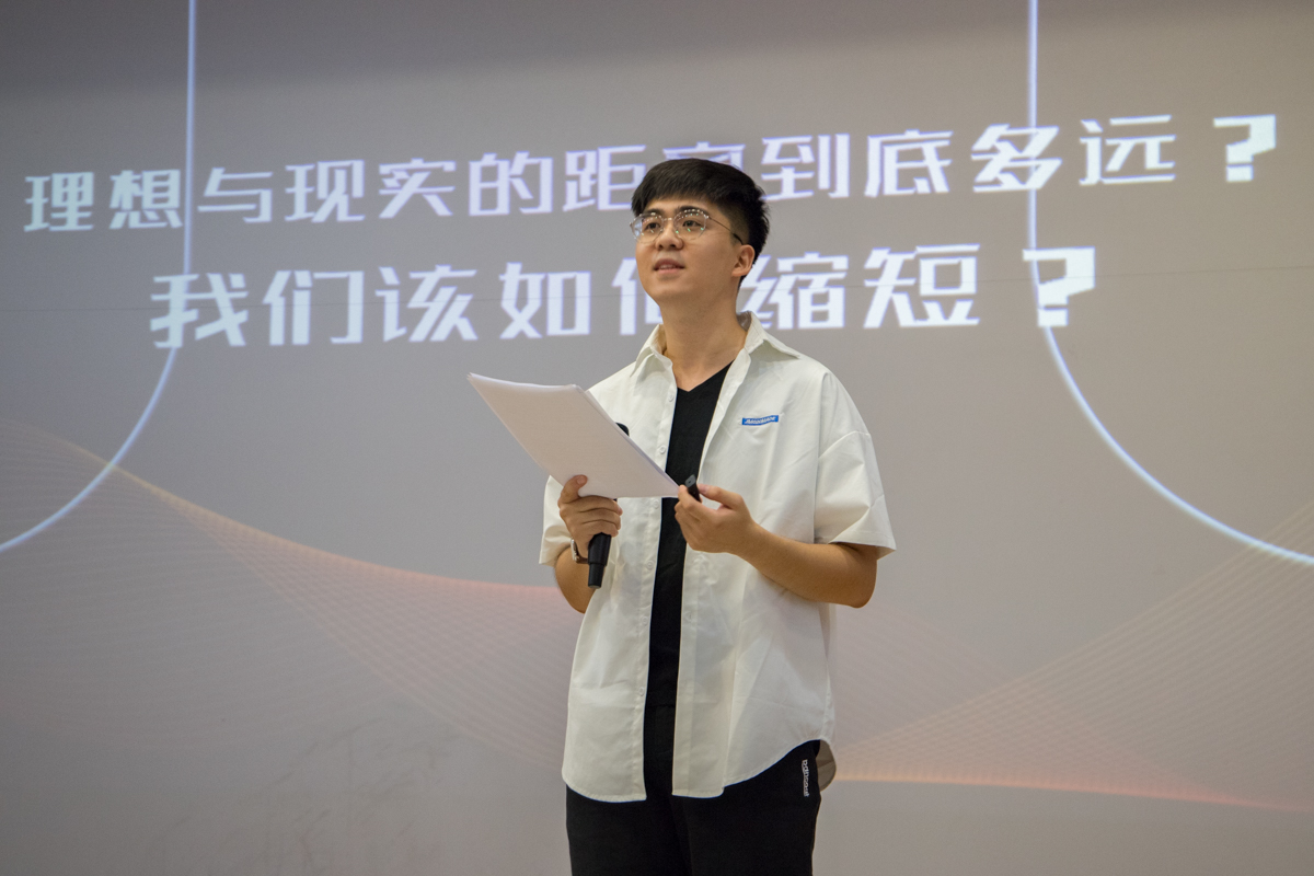 接着,在创业经验分享的报告中,TUMA联合创始人戚继昀结合自身经历介绍了创业前期所需的要素及相关注意事项,让新生对于创业有了初步的认识。当谈到如何缩短理想与现实的距离时,戚继昀坦言:“热爱是开端。因为喜欢,所以会全身心地投入,竭尽全力做好每一件事,完成每一个小目标。另外,TUMA是一个崇尚努力的团队,每个人的辛苦付出成就了TU MA的今天。”