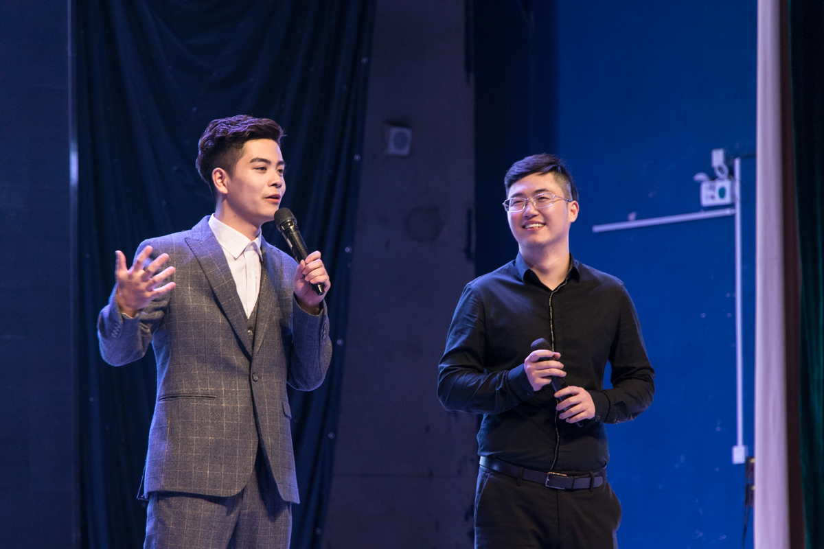达人舞团劲爆舞蹈《River》热辣开场,点燃全场激情。商英1501班带来歌舞《抖音,记录美好生活》,英语1502班带来励志歌曲串烧,他们都用歌声深情怀念大学四年难忘的时光。罗心仪、冯可欣分别演唱《Breathe》、《Wish you were gay》,两首独唱获得观众们的阵阵喝彩。接着,2015级前任辅导员张秋实的惊喜现身更是将晚会气氛推向高潮。张秋实真诚地祝福道:“很高兴和大家度过三年美好的时光,也很开心看到大家顺利毕业,希望你们的未来一帆风顺。”