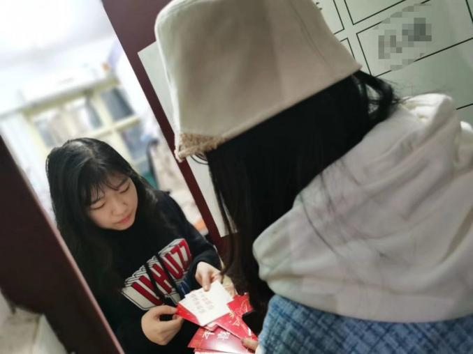 本次礼物包括为考研同学准备的文具“福袋”,为非考研的同学准备的爱心水杯,由学弟学妹亲手写下的贺卡和为每个同学准备的英国365集团个人专属的“机票”,寓意是祝福每个外院学子考研顺利,前程似锦,鹰飞鱼跃,鹏程万里。