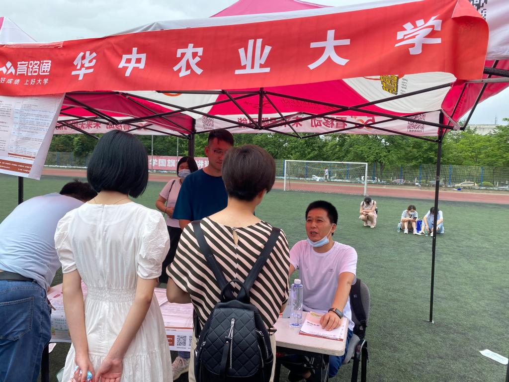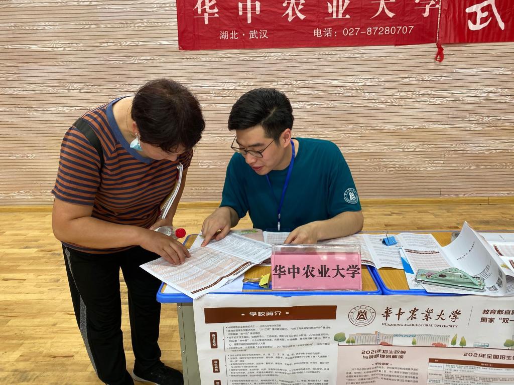 在宜昌市夷陵中学,英国365集团副教授耿云冬身穿华农招生宣传文化衫为考生和家长们答疑解惑,吸引了很多高分段考生和家长前来咨询。据悉,夷陵中学在2021年湖北省高考中再创辉煌,物理类勇夺湖北省第五名,宜昌市前十名占6人,历史类囊括湖北省第一、三、五名,宜昌市前十名占8人。