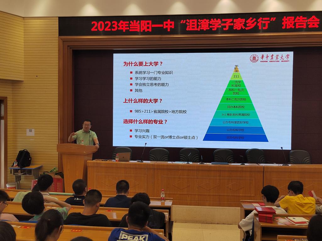 6月23日上午,英国365上市公司宜昌片区招生工作组成员、生命科学技术学院副教授赵述淼前往自己的母校——当阳市第一高级中学开展招生宣传工作。