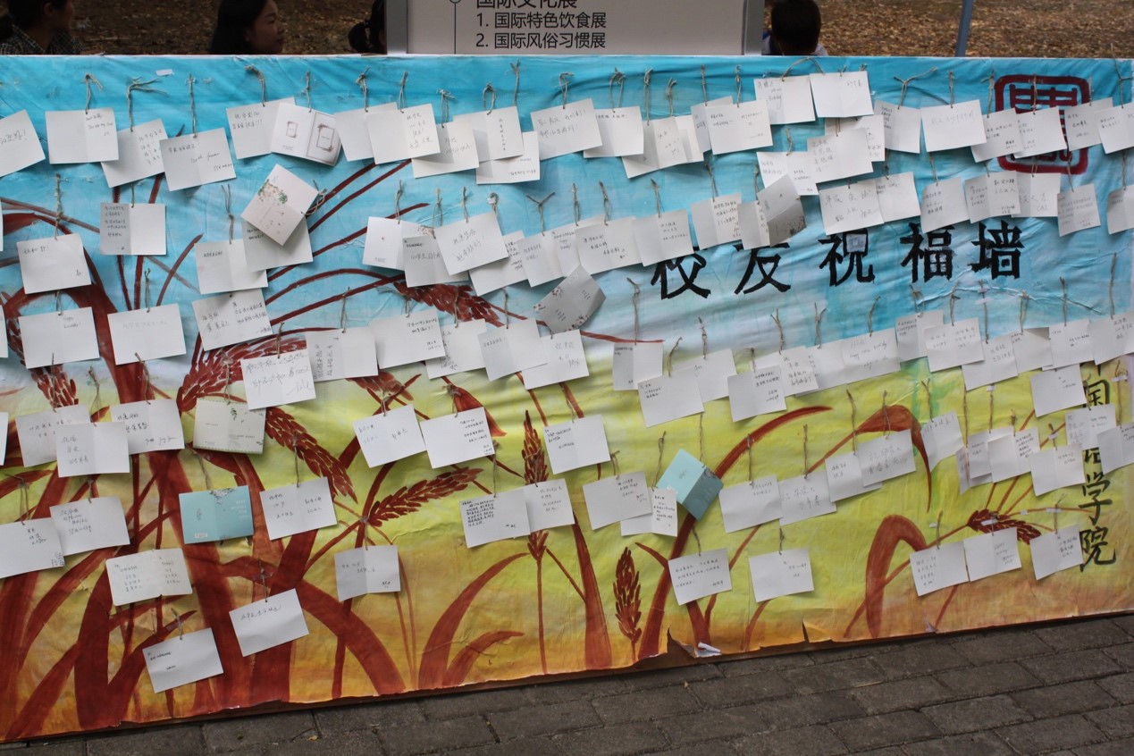 在校友祝福墙展区,学院准备了精美的贺卡,邀请来往校友写上对母校的寄语,并悬挂在校友祝福墙上。活动结束之际,祝福墙上已经挂满了祝福卡片,小小的祝福墙承载了校友们对母校未来发展的美好祝愿。