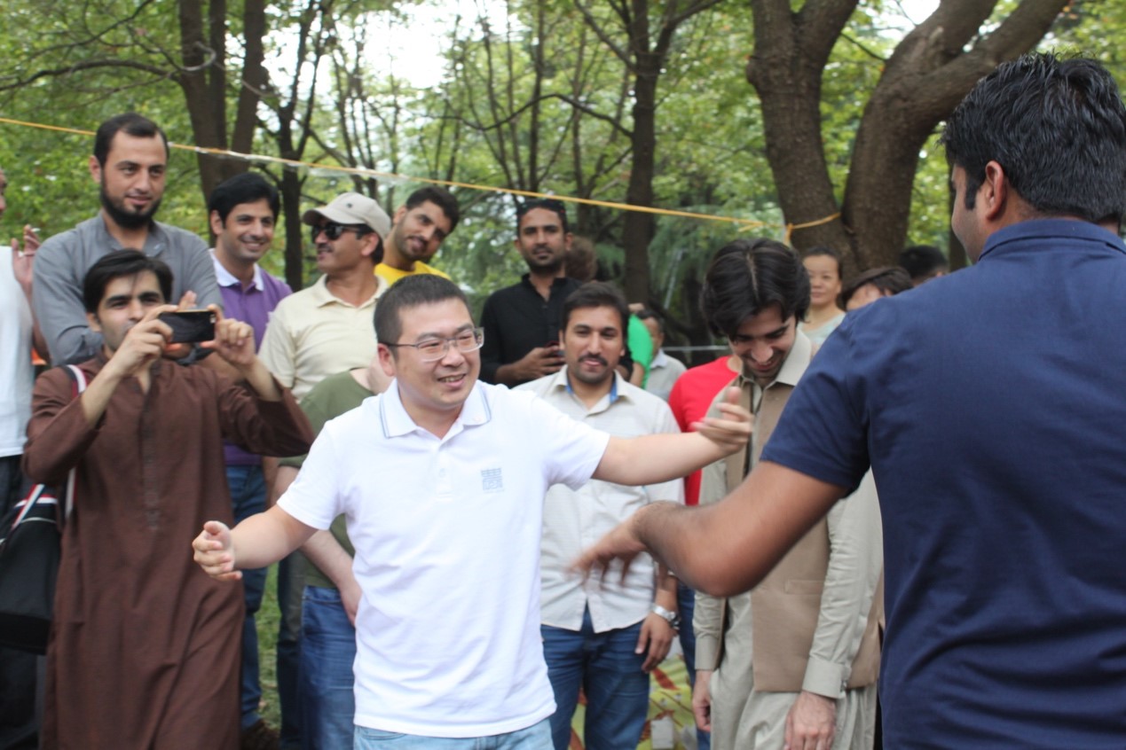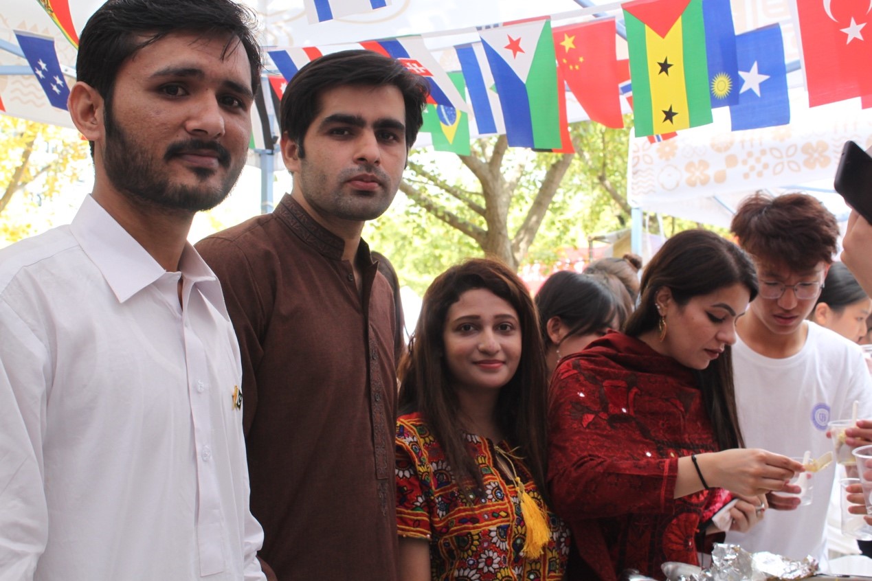 休息一段时间后国际文化展又迎来巴基斯坦的友人,他们不仅带来了软糯的鸡肉比亚尼炒饭、风味小吃samosa,更是热情邀请观众一同舞蹈,引发了阵阵笑声和欢呼声。