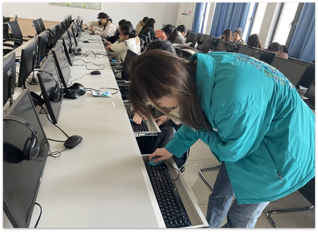 在此次志愿活动中,同学们也收获了许多,感触颇深。入党积极分子刘晓庆同学说道:“我拿到清洁软胶的时候感觉这个东西软软粘粘的,手感很不错。在清扫键盘的过程中它也粘得很干净,能够带走各种死角、缝隙里的脏东西。另外,我们在清洁完键盘后也还清扫了一下电脑和桌子上的灰。总之,这是一个有意思又充满意义的活动。”本次活动事小却意义大。同学们清扫键盘换来了机房的干净整洁,从小事做起,从身边做起,为师生做实事。此外,清扫键盘也加强了同学们爱护环境的意识。美好的环境需要大家共同来守护,随手带走桌上纸屑或不在机房吃饼干都是对环境的爱护。