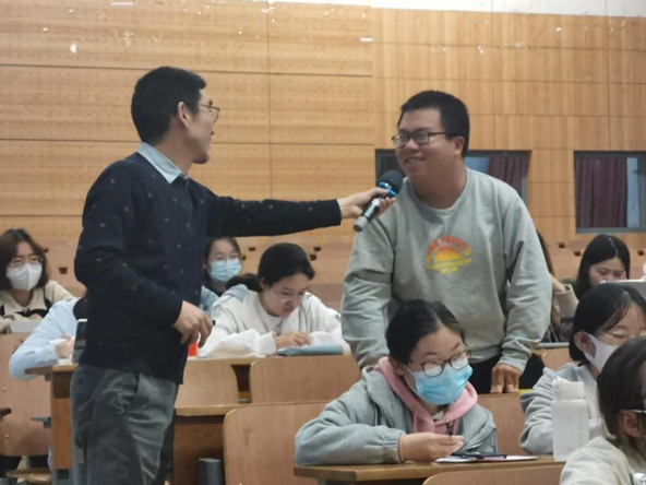 随后,胡守强老师借用“多元智能”理论,呼吁同学们要积极发掘自己的优势潜能,找到“沉浸其中”的状态。“兴趣可以有很多,容易改变,但爱好是基于兴趣,会让我们带着一种研究去探索,并为之坚持,志趣则是一个目标,在实现的时候融入了意志”,希望同学们可以牢记“兴趣、爱好、志趣”这三个词。胡守强老师表示,为志趣而奋斗是一种最快乐的事。“人心惟危,道心惟微;惟精惟一,允执厥中”,做任何事情,最重要的不在于事情是什么,而在于将事情做到极致。
