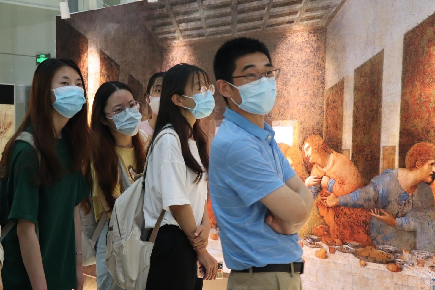在参观达芬奇展厅的时候,黄老师从达芬奇的出生以及后人的评价讲起,主要介绍了达芬奇的伟大作品和多栖造诣。通过黄老师对名画《蒙娜丽莎》和《最后的晚餐》的细致讲解,同志们赞叹于达芬奇的天才创造。英语本科生第二党支部的马怡伟同志如是说:“绘画、解剖、天文、数学、发明创造……达芬奇无疑是天才的存在、通才中的通才。正是因为他自身永不枯竭的求知欲和好奇心,他才成为了一代传奇,我们作为新生力量,也应该学习他的品质,永远充满好奇、探索未知。”