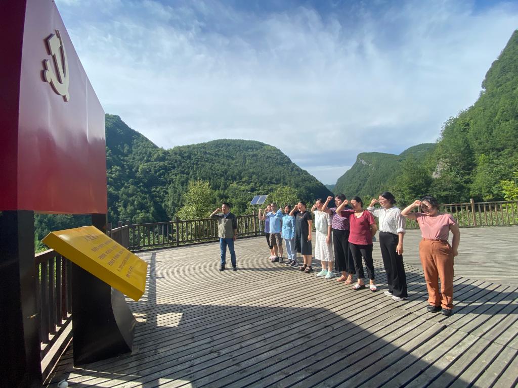 在情景教学中,老师们实地重走“愚公路”,体验了悬崖峭壁上的茶盐古道,感受不惧艰险、务实苦干的愚公精神,随行党员教师在党旗下庄严地重温入党誓词,在回望党的历史中进一步坚定信念之源,不忘初心践使命。老师们被店子坪人的“愚公精神”深深打动,党员付红桥感慨到:“店子坪人身上展现出的是新时代愚公精神,是一种将革命进行到底的精神!作为高校工作者,应该将这种精神运用在日常的教学和科研上,发扬新时期愚公精神。”