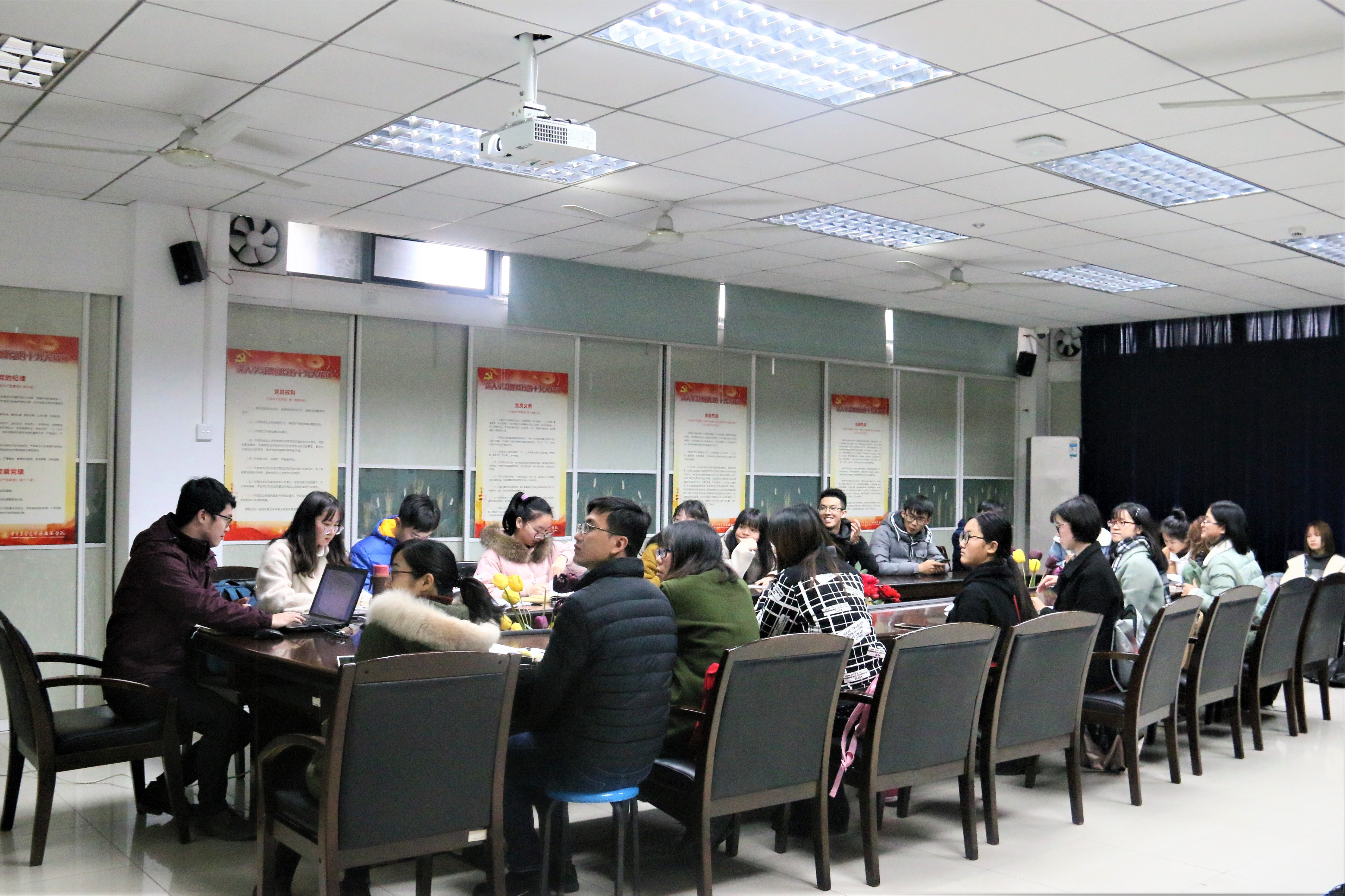 2018年3月16日下午,我校荟园一栋一女生寝室发生火灾,据了解,该火灾是由于该寝室一名学生在宿舍无人的情况下,使用笔记本电脑对充电宝充电而引发。为警示全院同学注意人身及财产安全,我院于3月19日中午11时40分在院办A102开展学生骨干安全教育会。辅导员张亚男、张秋实、邓文航以及我院全体班长支书参与了此次会议。