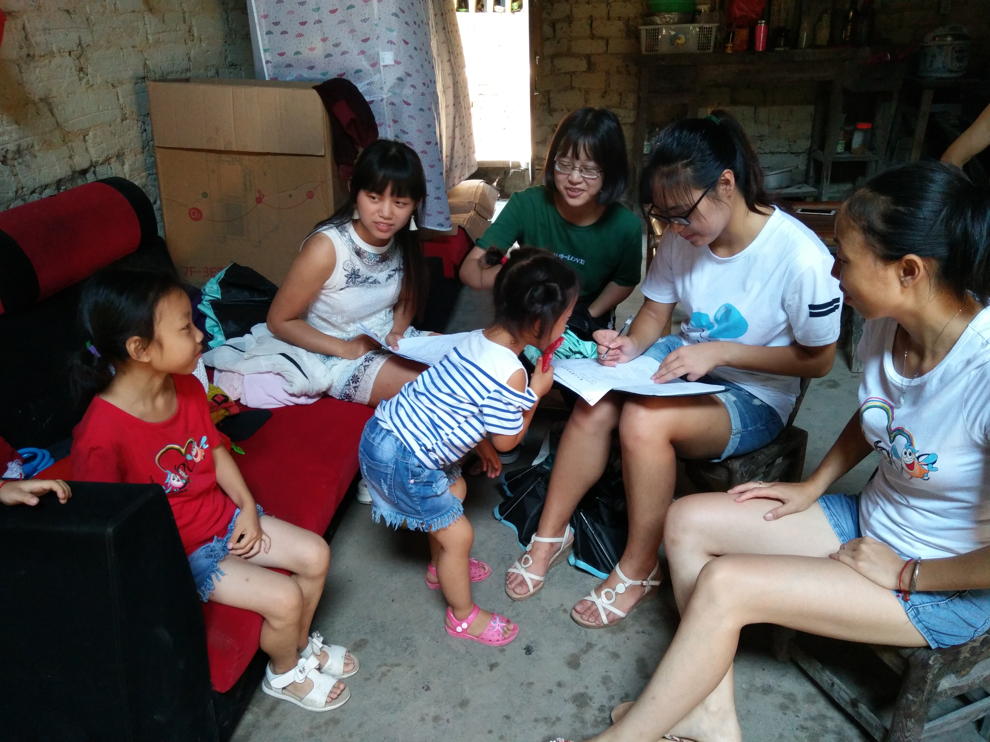 为期十七天的支教活动已经结束,但仿佛每一天的生活都历历在目。支教十七天,停水十天,队员们无论是洗衣服,做饭,还是洗澡都要去路上井边提水,尤其是女孩子们,将外院女生“女汉子”的潜力充分发挥出来;不仅如此,大家每天顶着40度的高温,在没有风扇和空调的厨房里自己做饭,虽然每顿饭只有五个菜,其中有三盘菜是土豆,但大家依然吃的很开心,想要改善生活了,就去镇上买一些面粉,回来自己擀面做疙瘩汤、包饺子……支教虽苦,却让人无法忘怀。支教中期,为了深入了解孩子们,小水滴队员对在校的每一个孩子进行了爱心家访,发放问卷并做好家访记录,从每一个孩子的家庭中我们都仿佛能读出一些故事,原来在纯真活泼的外表下,竟然有那么多的辛酸的故事。这里的孩子95%是留守儿童,其中近半的人父母离异,家庭不完整,更有个别孩子先天性残疾,给家庭带来沉重的负担。家访过后我们对这里的孩子了解更多了,也知道如何跟他们更好的交流,到后来我们不仅像师生,更像是朋友,我们为他们解答问题,他们带我们去小溪边捉虾,更有家长经常为我们送一些自己家种的蔬菜,在这里,我们体会到的是浓浓的情谊和深深的责任。