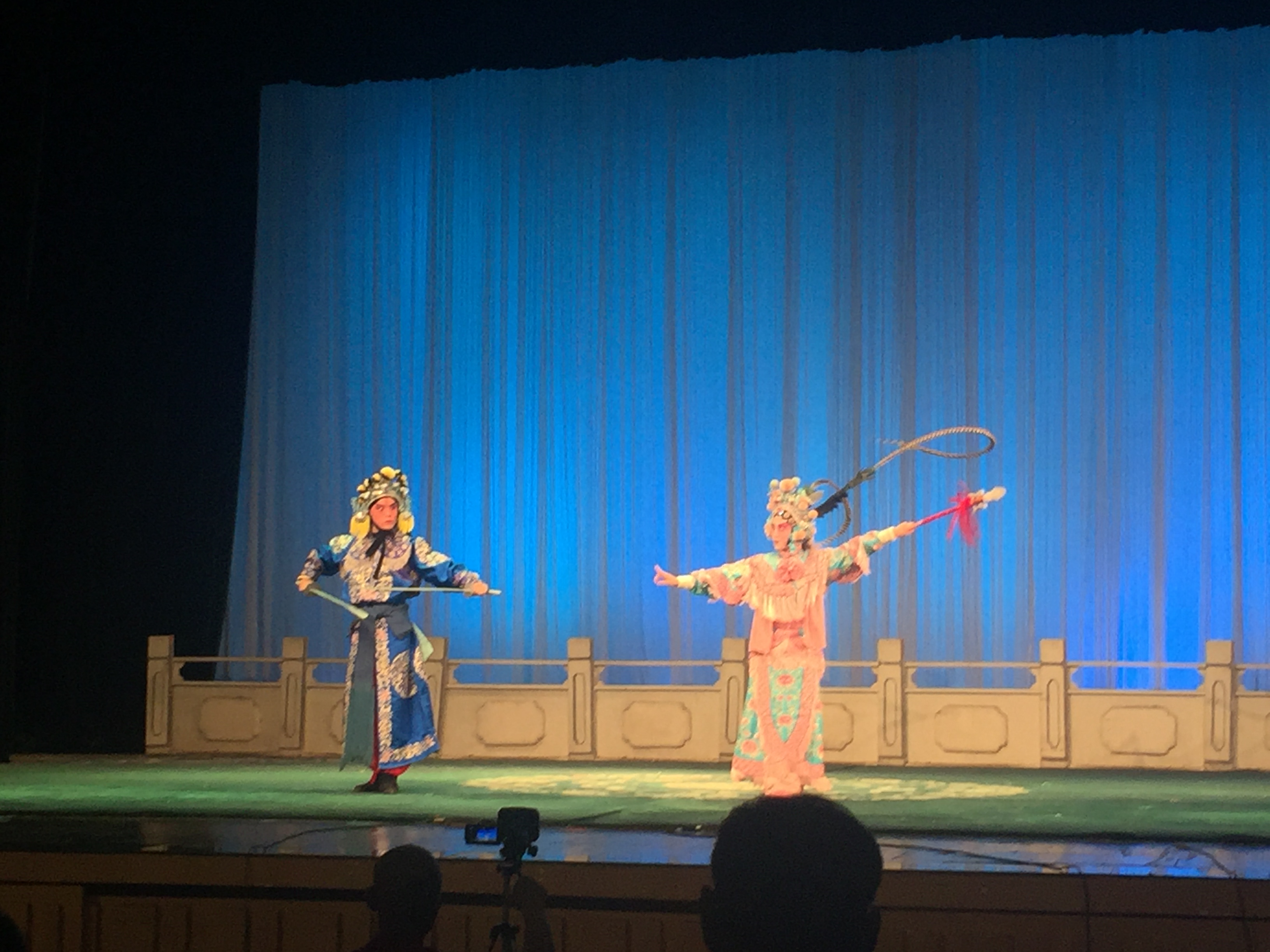 “我(祝樱梓)十岁开始上舞台,今年十五,我们班最大的22岁,最小的十岁。”在《扈家庄》演奏中间无意穿插了一个小插曲:扈三娘的头套因演员头发过短不牢固掉了,我们趁这个间隙采访了这个坐在我们前来捧场的艺校学生,她所说的年龄差距是我们始料未及的。随后,她补充道:“刚刚的《扈家庄》是出武旦的戏,刚刚台上的女生是武旦,我(祝樱梓)饰演的是花旦,我旁边的女生(周紫璇)演的是青衣,还有刀马旦之类的。当问及这些丰富多样的角色的区别,祝樱梓热情地告诉我们花旦以表演为主,武旦打戏比较多,青衣的话就是舞蹈甩十五米的绸缎。“我们课程安排有文化课,专业课,还有早功课,晚自习之类的。”说到兴起之处,她在闲暇之余跟我们谈到了她们作为青年演员的生活,“我们没有暑假的,都是这样一直演。最喜欢的时候是,一个人撑起一台戏,25分钟。”