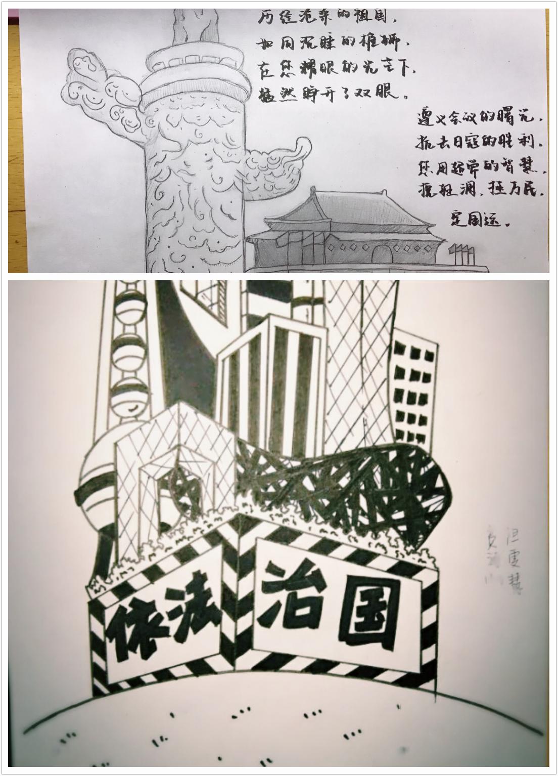 随着本次活动的开展,我院学生积极参与到其中并充分展示了大学生应有的时代特征与青春之气。“抚上红缨枪,它分明凉得发烫。”、“党徽闪耀圆梦想,伟大复兴在路上!”一句句原创诗歌震撼着我们的情感世界;一幅幅画卷勾勒出一颗颗赤诚之心;一件件精美的手工制品包含着同学们对党、团的热爱。除了这一份份作品,我院学生也有很多想对党、团说的祝福语。来自商务英语1604的范丝怡同学说到:“我们在最好的时光遇见最好的自己,当然也希望我们的党和团能继续在这个时代引领我们这一代青年走向更美好的未来。”相信通过这一次简单的微作品展示,我院学生对党团的理解会进一步加深。