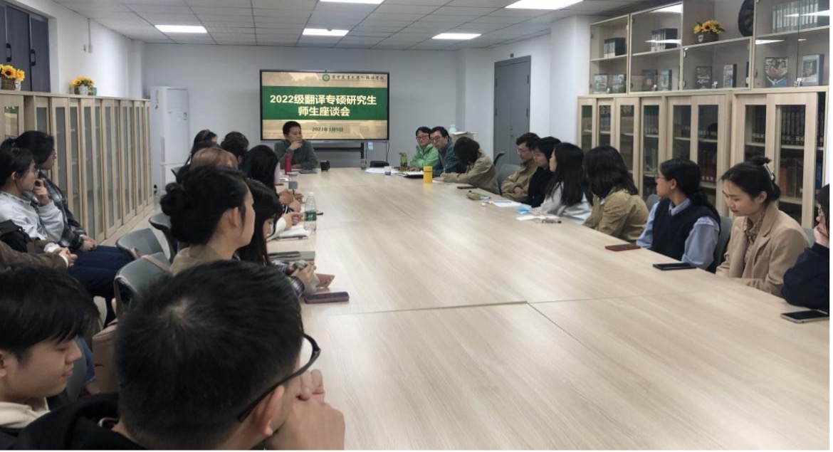 为了解决2022级翻译硕士研究生的学习中的困惑,3月9日下午4点,英国365集团召开研究生师生座谈会。学院党委副书记许刚、副院长秦发兰、翻译硕士专业学位(MTI)教育中心主任耿云冬老师、副主任郭海燕老师、谢露洁老师、辅导员范莉老师及全体翻译硕士研究生参加了座谈会。