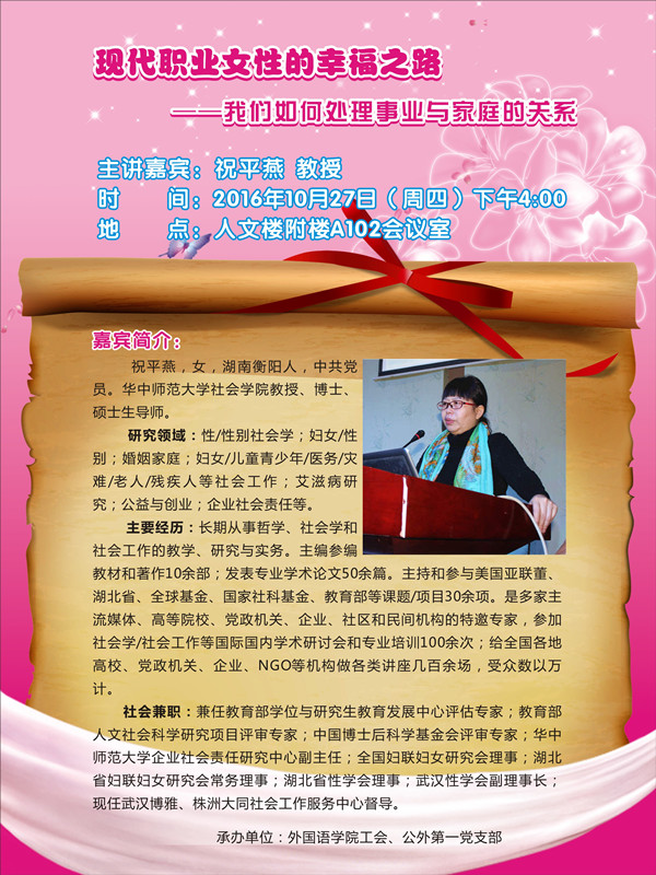 主讲嘉宾:祝平燕,女,湖南衡阳人,中共党员。华中师范大学社会学院教授、博士、硕士生导师。