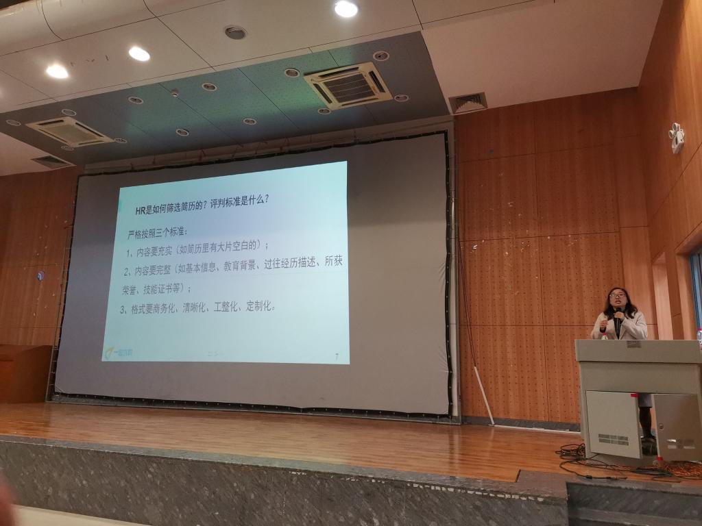 诚然,无论是选择何种就业方式,学会如何撰写一份得体的简历都是每位毕业生的“必修课”。为此,学院特地为各位毕业生邀请了大学生生涯规划与就业指导职业咨询师段林娜老师为大家开展有关简历撰写的讲座。针对日常工作中碰到的简历“典型”和“要害”问题,段老师针对性地给同学们介绍了HR进行简历筛选和评判的标准。段老师以两份学生简历为例,详细地给同学介绍了简历制作的误区,并在字体、颜色、排版上提出了具体建议,“内容要充实,内容要完整,格式要工整。这是简历最基本的三个标准,大家在制作简历的时候应当以此为参考。”针对求职简历制作,段老师指出,相关行业的实习经历能够给求职者带来优势,所以在排版布局上需要有所侧重。此外,段老师表示,由于篇幅限制,简历最好控制在一页以内,这也要求同学们必须对自己的经历和奖项做出一定取舍,不能全盘照搬到简历上。在通过简历表达自身优势时,段老师建议同学们要写出事实与过程,用数据和细节来论证自己的核心优势和岗位匹配度。简历是求职者的名片,应当进行个性化定制,避免“一张简历走天下”。投递相应岗位时,求职者应该针对性选取相关信息,展现自己对于该岗位的独特性。