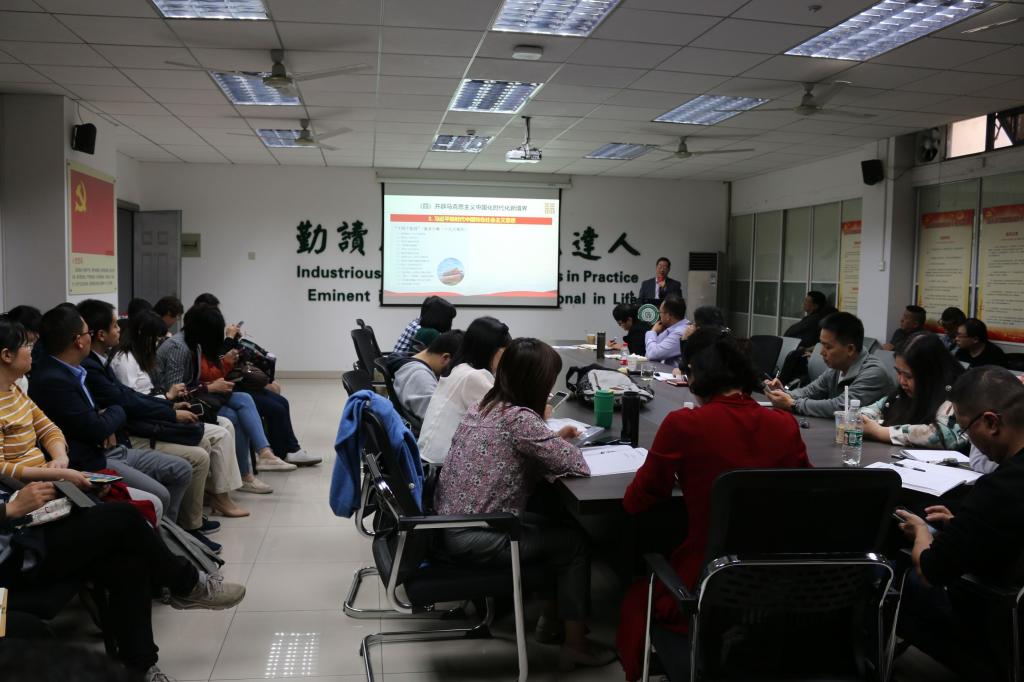 为深入学习贯彻党的二十大精神,用党的二十大精神武装头脑,11月10日下午,马克思主义学院梁伟军教授应邀在人文楼附楼A102做党的二十大精神“精读精讲”专题辅导报告。全院教职工参会学习。报告会由院党委书记胡守强主持。
