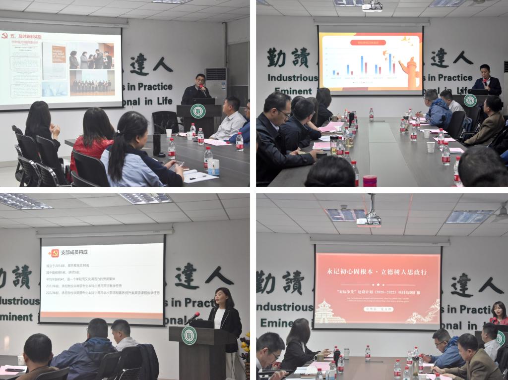 会上,四个获批校级“对标争先”建设计划立项项目负责人对标建设目标、创建任务、开展情况和取得成果展开汇报。