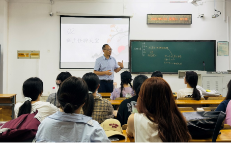 9月6日晚的新生班会,对于新生来说,是梦想启航的地方。此次班会,主要是为了帮助同学们适应新的环境,引导新生正确认识大学生活,做好生涯规划,以崭新的精神面貌迎接大学生活,扣好大学的第一颗扣子。青平走进外文2307班的教室与同学们亲切交流,和同学们探讨英语学习方法,鼓励同学们充分利用丰富的学习资源,珍惜优渥的学习环境。青平以许渊冲先生为例,勉励同学们刻苦钻研,潜心学术。此外,他特别指出,英语作为连接世界的桥梁,是各民族、各个国家、各种文明交流沟通的重要工具。他鼓励同学们以英语为核心,争做“英语+”的复合型人才,顺应潮流、抓住机遇,与时代同频共振、互利共赢。