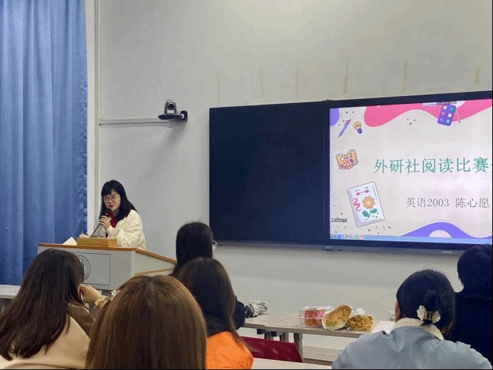 11月18日下午,我院成功举办了2022年“外研社•国才杯”英语系列赛事参赛经验分享会。本次分享会以“读写赋能,以赛促学”为主题,旨在通过朋辈分享经验,帮助更多学生掌握英语演讲、阅读、写作的技巧和方法,激发学生们积极参加各项专业赛事的热情,在备赛过程中不断提升语言技能与思维能力,实现以赛促学。分享会邀请到了本年度“外研社•国才杯”英语系列赛事的三位省赛一等奖得主英语1901班张陈辰、英语2003班陈心愿、英语2001班郑斯媛进行参赛经验分享。本次分享会由英语读写基层教学组织和英语系共同主办,采用线上线下相结合的形式,吸引了近百名学生参与。