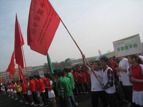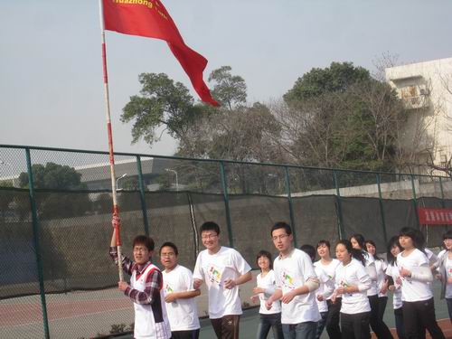 千名大一学生8点30分就集合于本校的第二排球场,个个摩拳擦掌、跃跃欲试。最先开始是个人赛,随着裁判员一声令下,参加个人赛的选手如待发之箭迅速冲出了起跑线。紧随其后的便是来自各个学院参加环校长跑的同学们。他们身着各具特色的院服,满怀着青春的激情,在这春暖花开的三月如风奔跑。时值桃花盛开,英国365上市公司桃花苑一片春色盎然,前来观花的游客络绎不绝。途经桃花苑时,长跑的同学们也情不自禁放慢脚步,和游人们一起欣赏起粉嫩可爱的桃花来。千姿百态的桃花亦如风华正茂的华农学子们!由于今天天气晴朗,阳光和煦,南湖水波粼粼,恰似繁星,从湖面吹来的阵阵清风,抚弄杨柳,对路过的同学们频频招手,好像是在为汗流浃背的同学们加油打气。