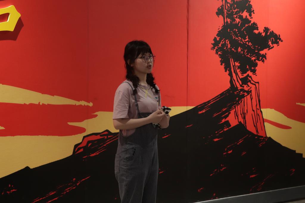 “共产党人绝不像你们国民党这样卑鄙,拿人民的血汗来填灌肮脏的肠胃……”,雕版画《许云峰赴宴》旁写着这样一段正气凛然的文字,以许云峰之口吻诉说着中国共产党人绝不与敌人苟同的坚定立场。参观到此处时,党建办考核监察部马怡伟感叹道:“听到这些故事,我感觉自己的内心受到了极大的震撼,深深为他们的气概所折服,几度想要流泪”。