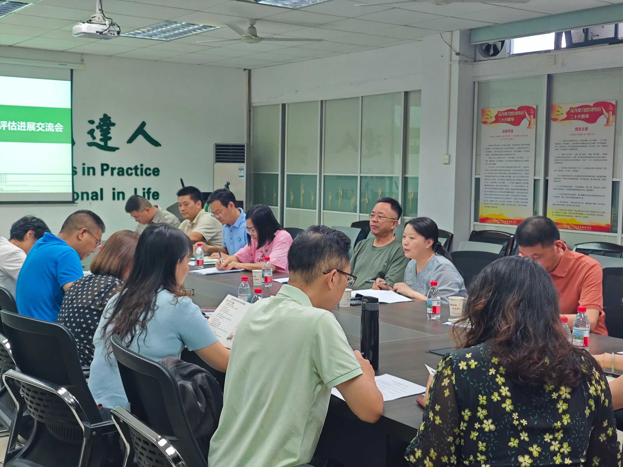 副院长方红从评建工作推进情况、暑期重点任务安排及当前面临的主要问题等三个方面作汇报。学院已制定评建工作方案并落实责任机制,完成专业特色发展报告撰写,初步凝练出问题清单及整改措施,同步推进人才培养方案修订工作。在材料准备方面,已完成7万余份考试材料的全面核查和近三年课程大纲等教学档案、本科生毕业论文及相关支撑材料的规范整理工作。暑假期间学院将重点推进自评报告定稿、教学材料归档、问题整改落实,以及汇报材料制作、教师专项培训和迎评准备工作。